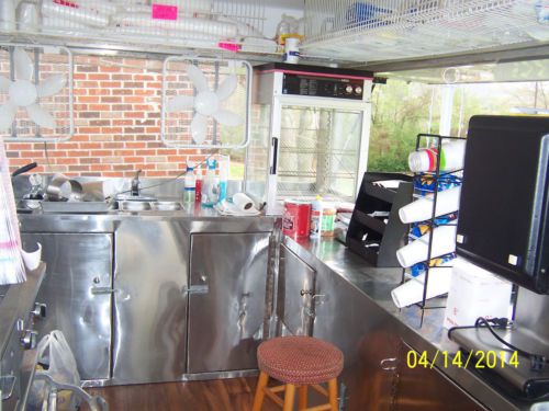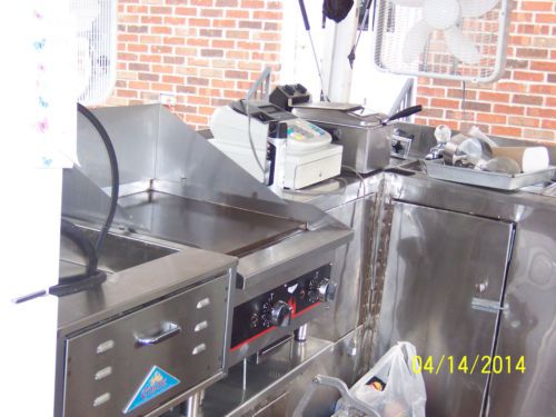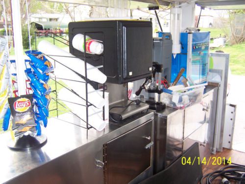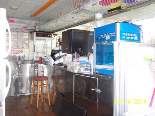 have for sale a 2008 20x7.8 loaded concession food trailer This trailer is wired for 110 or 220 The inside has lots of counter tops and cabinet space layered in stainless steel 3 compartment sink and a hand sink, a large fresh water tank, a large waste water tank All four sides of the trailer opens up ,Has four fans to keep air flowing,Has a fire extinguisher mounted to wall Has four colored florescence lights recently had four new tires put on it,Has hardwood look linoleum rug medal shelves at top of trailer on all four sides with an outside holder to prevents spillage Has lock on end of trailer to prevent it from being stole, and trailer is licensed to April, 2015 I never have a problem getting the Health Dept. to pass this trailer when inspecting it. Items included in the trailer: Taylor brand 2 flavored soft ice cream machine that can produce chocolate, vanilla, and choc/van. Twist cone, Regular size Magic shelf Refrigerator,36 in. Propane Vollrath Grill, 3(30lb.) propane gas tanks Propane Castle Comstock Funnel Cake machine (can make 4(8in.) or 6(6in.) funnel cakes at a time Electric Hatco food warmer that holds a lot of foods. Burgers, hotdogs, fries etc. Electric counter top deep fryer, Used for fries, ribbon potatoes, and blooming onions Polar cone sno-cone machine , Nemco Ribbon potato machine ,Blooming Onion Machine, Nacho chili /cheese machine, Cotton Candy Machine, stand up cotton candy rack, Small Popcorn machine,60 cups stainless steel coffee maker,60 cups stainless steel pot for hot chocolate water ,5 gal. Lemonade water container, 1.5 gal. lemon juice container,Lemon juicer,4 sleeve ice cream holder,44 individual chip rack,Royal 435 electronic cash register,Condiment holder,4 rack cup holder, funnel cake pitcher, electric mixer/bowls ,8in. funnel cake ring/plate, 12 plastic mustard/ketchup holders, powdered sugar tub, trash can etc. This trailer also has a lot of inventory in it such as, different size cups, straws, funnel cake plates, ice cream bowls, nacho/cheese bowls, napkins, a variety of condiments ,sno-cone bowls, hotdog wrappers, popcorn bags, hand gloves ,Reynolds sandwich wrappers, paper towels spoons, sno-cone syrup, cotton candy mix , cotton candy bags & cones, step up stool, sitting stool , garbage bags etc. just add food and your ready to make money this concession trailer is setup ready thanks for looking and god bless emails or calls welcome please no calls after 9pm ONLY REASON FOR SELLING IS WE ARE RETIRING