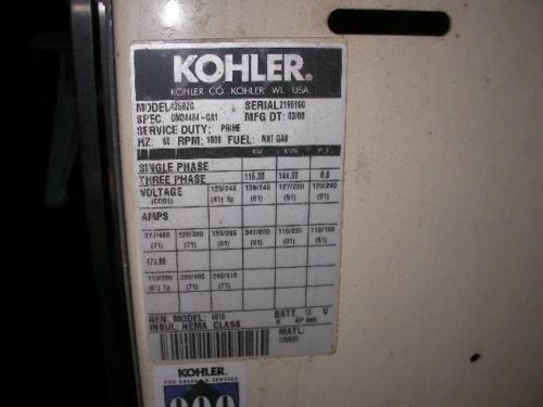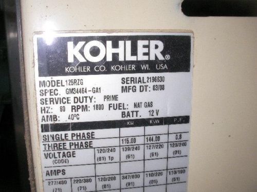 | MPN | Natural Gas Kohler 125RZG Generator | ||