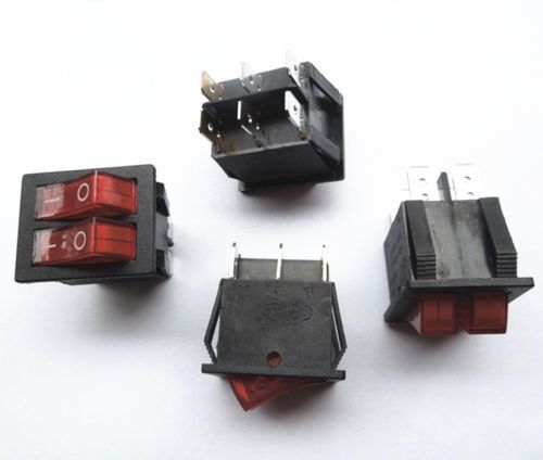 10X Illuminated Rocker Switch Green Red 15A 250V 6 Pin 2 Row Panel Mount ON/OFF