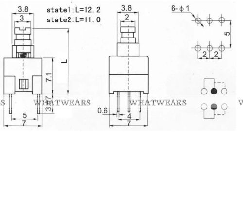 10p SS-2319 6 Pin DPDT Solder Pin Slide Switch -Nickle 3A250V AC/ 6A125V AC