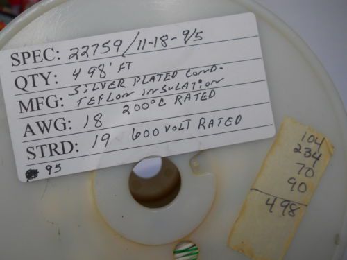 12/19E-5 MIL SPEC 16878/4 SILVER CONDUCTOR TEFLON INSULATION 124/FT.