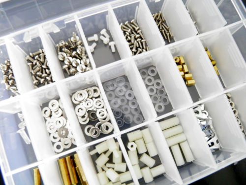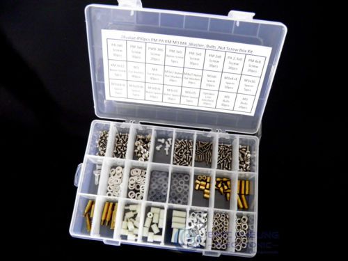 24value 735pcs M2 M2.5 M3 PM PA PT 3X6 Screw Nex Nuts Washer Nylon Box Kit 24