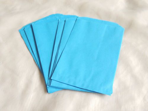 100 -5x7 BLUE Paper Party Bags, Paper Merchandise Serrated Edged Bags
