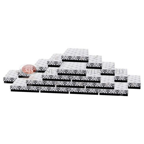 50 Damask Print Gift Jewelry Cotton Filled Boxes 7 1/8" x 5 1/8" x 1 1/8"