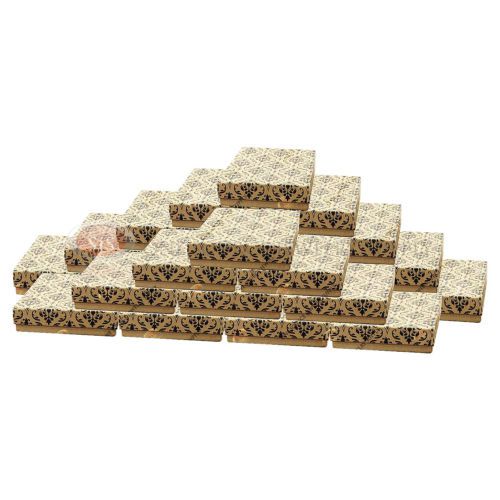 25 Damask Print Gift Jewelry Cotton Filled Boxes 3 1/4" x 2 1/4" x 1" Bracelets