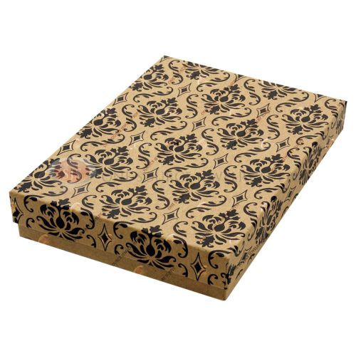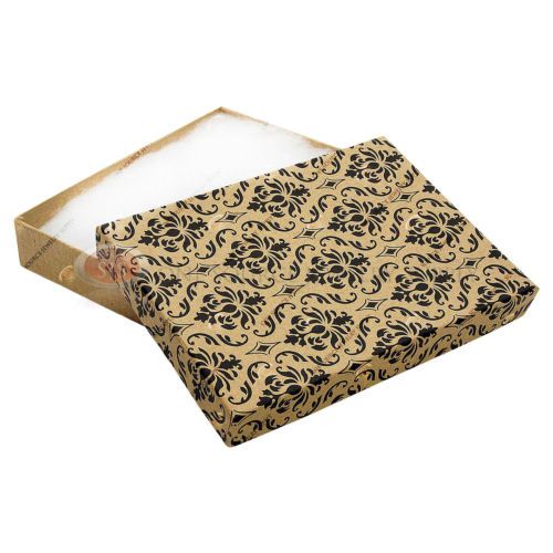 100 Kraft Damask Print Gift Jewelry Cotton Filled Boxes 5 3/8" x 3 7/8" x 1"