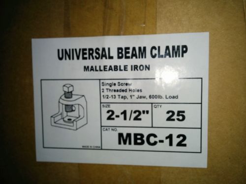 (50 pc) Malleable Iron 2" Universal Beam Clamps 3/8"-16 Tap 7/8" Jaw 300 lb Load
