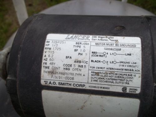 | “USED LANCER A.O.SMITH 115 VOLT 1/3 HP AC MOTOR WITH A PROCON 250 PSI 80 TO 100GPH WATER PUMP OFF OF A SODA FOUNTAIN 3/8" ENDS. IN GOOD WORKING CONDITION” |