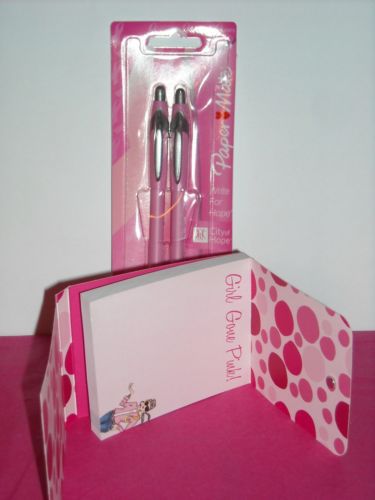 (#2524) "Breast Cancer Awareness" 2pk Pink PAPERMATE Pens & 75 pg Mini Notebook