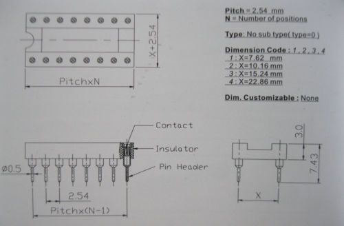 120x IC Socket Adapter Round 40 Pin headers & (IC)Sockets Pitch 2.54mm X=15.24mm