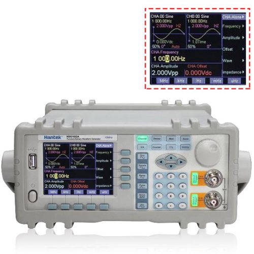 3.5 inch Hantek TFT LCD HDG1022A Waveform Function Signal Generator 40uHz~20MHz Description Direct Digital Synthesis (DDS) technology, 2 independent output channels; 3.5-inch TFT display, English/Chinese menu; Minimum stable output waveform: 1mV/ (50Ω); Frequency sweep, amplitude sweep, burst and A B add functions; Over voltage, over current, output short-circuits and reverses voltage protections Specification: Model HDG1022A HDG1012A Frequency range(sine) 40uHz~20MHz 40mHz~10MHz Output Characteristics of Channel A Waveform Characteristics Waveform type sine, square, pulse, DC Sine, Square, Triangle, Ramp, Pulse etc. Waveform length 4 ~ 16000 points 1024 points Sample rate 180MSa/s 100MSa/s Waveform amplitude resolution 10bits 8bits Sinusoidal harmonic rejection ≥50dBc (≤1MHz), ≥ 40dBc (1MHz ~ 20MHz), ≥30dBc (20MHz ~ 40MHz) ≥40dBc (<1MHz), ≥35dBc (1MHz~20MHz) Sine wave total distortion ≤0.5 % (20Hz ~ 200kHz) ≤1% (20Hz~200kHz) Pulse and square rise/fall time ≤20ns ≤35ns Pulse and square overshoot ≤5% ≤10% Square wave duty cycle 50% 1%~99% Pulse wave duty cycle 0.1%~ 99.9% -- Frequency Characteristics Frequency range sine:40μHz ~ 2kHz, resolution: 40μHz; 2kHz ~ the Max.frequency, resolution: 40 mHz; square: 40μHz~20mHz; pluse:40μHz~10mHz sine: 40mHz~Max.frequency (MHz); square: 40mHz~5MHz; other waveforms: 40mHz~1MHz; Frequency resolution -- 40mHz Frequency accuracy ±(5×10-5+40mHz) ±(5×10-5+40mHz) Frequency stability ±5×10-6/3 hours ±5×10-6/3 hours Amplitude Characteristics Amplitude range 2mVpp ~ 20Vpp (high impedance) 2mVpp~20Vpp 40mHz~10MHz (high impedance); 2mVpp~15Vpp 10MHz~15MHz (high impedance); 2mVpp~8Vpp 15MHz~20MHz (high impedance) Amplitude resolution 20mVpp (amplitude>2Vpp), 2mVpp (amplitude<2Vpp) Amplitude accuracy ±(1%+2mVrms) (high impedance, RMS, 1kHz) ±(1%+2mVrms) (high impedance, RMS, 1kHz) Amplitude stability ±0.5%/3 hours ±0.5%/3 hours Amplitude flatness ±5% (frequency<1MHz), ±10% (1MHz ~ 10MHz), ±5% (frequency<10MHz), ±20% (frequency between 10MHz ~ 60MHz) ±10% (frequency >10MHz) Output impedance 50Ω 50Ω Sine wave amplitude setting range (50Ω) 1mVpp ~ 10Vpp, when output frequency ≤10MHz; -- 1mVpp ~ 5Vpp, when output frequency ≤40MHz; 1mVpp ~ 2Vpp, when output frequency ≥ 40MHz; Amplitude setting range (high impedance) 2mVpp ~ 20Vpp, when output frequency ≤10MHz; -- 2mVpp ~ 10Vpp, when output frequency ≤40MHz; 2mVpp ~ 4Vpp, when output frequency ≥40MHz ; Offset Characteristics Offset range ±10V (high impedance) Resolution 20mVdc Offset accuracy ±(1%+20mVdc) Sweep Characteristics(linear sweep on frequency or amplitude) Sweep range free to set start point and stop point Sweep step any value more than resolution Sweep rate 10ms~60s/step Sweep mode Up, Down, Up-Down Manual sweep step/time Frequency Modulation Characteristics Modulation signal internal or external waveforms internal signal, channel B or external waveforms FM deviation 0%~20% 0%~20% Carrier signal -- channel A signal Amplitude Modulation Characteristics internal or external waveforms internal or external waveforms 0%~120% 0%~120% Shift Keying Characteristics FSK free to set carrier frequency and hop frequency ASK free to set carrier amplitude and hop amplitude PSK hop phase 0~360°, resolution 11.25° hop phase 0~360°, resolution 1° Alternative rate 10ms~60s 10ms~60s Output Characteristics of Channel B Waveform Characteristics Waveform type 32 kinds of waveforms, like sine, square, triangle, sawtooth, ladder etc. Waveform length 1024 points Sample rate 12.5MSa/s Waveform amplitude resolution 8bits Frequency Characteristics Frequency range Sine: 10mHz~1MHz; Other waveforms: 10mHz~100kHz Frequency resolution 10mHz Frequency accuracy ±(1×10-5+10mHz) Amplitude Characteristics Amplitude range 50mVpp~20Vpp (high impedance) Amplitude resolution 20mVpp Output impedance 50Ω Harmonic Characteristics (channel B frequency is the harmonic wave of channel A) Harmonic time 0.1 ~ 250.0 times -- Harmonic frequency <1MHz -- Phase adjustment coarse adjustment: 11.25 degree/step, fine adjustment: 2 degree/step -- Burst Characteristics(channel B signal is used as burst signal) Frequency of Channel B 40mHz ~ 1MHz Burst Frequency 10mHz ~ 50kHz Burst count 1~65000 cycles Burst mode continuous burst and single burst TTL Output Characteristics Waveform characteristics Square, rise/fall time≤20ns Frequency characteristics same as sine wave of channel A 10mHz~1MHz Amplitude characteristics TTL, CMOS compatible, low level<0.3V, high level>4V Common Characteristics Power source Voltage: AC220V (1±10%), AC110V (1±10%) (Pay attention to the position of voltage selection switch); Frequency: 50Hz (1±5%) Power: <45VA Environment Temperature: 0~40℃ Humidity: <80% Operation characteristics Key operation for all functions, menu display, rotary dial adjustment Display TFT display, 320*240, English, Chinese (simplified), Chinese (traditional) Mechanical 415mm×295mm×195mm; 3.5kg Manufacturing technology Surface Mount Technology, Integrated Circuit. High reliability and stability. Optional Parts Characteristics Frequency counter Testing frequency range: 1Hz~200MHz;Input signal amplitude: 100mVpp~20Vpp Max. output power: 7W (8Ω), 1W (50Ω) Max. output voltage: 22Vpp Power amplifier Frequency bandwidth: 1Hz-200kHz Package Contents: Payment 1.We accept only PayPal payment. 2.Buyer must pay using PAYPAL ONLY within 7 days from the date of transaction made. Full Payment--Transaction with insufficient payment will not be handled. So, please make you complete the full payment, including Final price + Postage. 3.No Discount--No discount is offered for all transactions. 4.Processing--We will arrange the dispatch within two working days after we receive the valid and completed payment. Delivery details 1. We ship worldwide except Italy/Turkey/Brazil due to their strict customs tariff policys. 2. Delivery address on Paypal Only--We only ship to the given address in Paypal payment. Ple