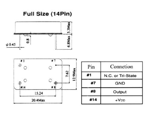 | Model | Full size (DIP 14pin package) Crystal Oscillator |