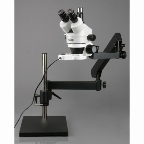 Key Features: 3.5X-90X continuous super widefield zoom magnification Offering super widefield sharp clear erect stereo images Articulating arm stand offers great flexibility and covering large working area Trinocular port for adding photo or video capability 8W fluorescent ring light providing shadow-free illumination Brand Name: AmScope Model No: SM-7TZ-FRL This trinocular 3.5X-90X zoom stereo microscope with articulating and base plate gives sharp and crystal clear images with high resolution. It comes with 30mm super widefield high-eye-point 10X eyepieces, a fluorescent ring light, a versatile articulating arm stand, and a trinocular port for photo or video attachment. This microscope provides 26:1 large zoom range and 8" (200mm) large working distance. It is an ideal instrument for research labs, gemologists, collectors, engravers, and anyone in semiconductor and/or electronic industry. This stereo zoom microscope is brand new in box. Its retail value is above $2,200. Features : Trinocular port for photo or video attachment Continuous 3.5X-90X large zoom magnification 8" (200mm) large working distance 45 degree inclined trinocular head with SUPER widefield high-eyepoint eyepieces 30mm SUPER widefield 10X eyepieces with 20mm field of view Adjustable interpupillary distance Sharp stereo erect images over a wide field view High resolution with great flatness and contrast Crystal clear original true color images Both ocular-tubes with adjustable diopter Accurate alignment ensuring a fatigue-free long time viewing Full optical glass elements Precise ground glass lenses Versatile articulating stand covering extremely large working area Articulating arm with heavy-duty stand finished with stain resistant enamel All metal mechanical components Fluorescent ring light included Rubber eye-guards included Manufactured under ISO 9001 quality control system Excellent five (5) year manufacturer warranty Lowest price guaranteed or refunding difference! Satisfaction guaranteed or your money back! Specifications: Head: 45 degree inclined 360 degree rotatable trinocular Eyepieces: 30mm super widefield high-eyepoint 10X Barlow Lenses: 0.5X and 2X Objective: 0.7-4.5X Zoom Range: 26:1 Working Distance: 8" (200mm) Field of View: 2-1/2" (65mm) Max Diopter Adjustment: +/-5dp Interpupillary Distance: 2-3/16" - 2-15/16" (55-75mm) Stand: Heavy duty articulating arm with solid cast steel base Illumination: 8 Watt 110V (220V available) fluorescent ring light Accessories: eye-guards Packing List : One Trinocular Zoom Microscope Head One Pair of Super Widefield High-eyepoint 10X Eyepieces One Super Widefield 0.5X Barlow Lens One Super Widefield 2X Barlow Lens One Articulating Arm with Pillar and Base Plate One Focusing Rack One Fluorescent Ring Light One Ring Light Adapter One Pair of Eye-guards Weight: 75 lbs Package: 2 (60+15) Shipping & Handling: FREE Shipping to Contiguous USA (the lower 48 States) International Shipping and Handling Froo www.froo.com | Froo Cross Sell, Free Cross Sell, Cross promote, eBay Marketing, eBay listing Apps, eBay Apps, eBay Application Return Policy Warranty Information Nondefective Items Defective/Missing Items Return Procedure We offer 14 days from the date of receipt (verified by tracking information) to request a return on a unit. To do so, please send us a message through eBay member to member messages, with your reason for return, requesting an RMA number. Refunds for nondefective items requested within 14 days of receipt are less our original shipping and handling costs. Note, we offer free shipping within the 48 continental U.S. states on many items, which means we pay the courier to take the item to you--it is this cost that is recovered from your refund on a return. Defective items will not be subject to this deduction, however if the returned unit is tested working on return, the refund will be subject to the deduction. Note that shipping costs are borne by the customer. Returns requested after 14 days are not valid, and any returns sent without an RMA number will be returned to sender at the sender's expense. Also, please insure all items shipped back, as damage to items by the courier during the return shipment to us are not covered otherwise. Please keep all original packing materials, as they are required for return (or a restocking fee will also be charged). Returned items must be in new/usable condition unless defective on arrival to you. We, AmScope, provide all warranty services. Please feel free to contact us whenever you need help by messaging us from the store you purchased the product from. - Five Year Warranty for Microscopes - All our microscopes come with a five (5) year factory warranty against manufacturing defects, covering labor and parts. - One Year Warranty for Accessories - All our microscope accessories (USB cameras, illuminators, illumination, dust covers, and etc.) come with a one (1) year warranty. Note: Buyers bear the cost of shipping and handling cost round trip for warranty services. Warranty does not cover consumable accessories and parts such as bulbs. Warranty service times vary throughout the year, and are processed in a first come, first serve manner, when parts are available and in stock. Most repairs/replacements are done within 1-2 weeks, however if there is a long line during the busy season, or if your parts need to be ordered from our manufacturer, processing times can be up to 6-8 weeks. We appreciate your patience and understand everyone has a critical need for their unit, and do everything we can to ensure that these requests are handled as quickly as possible. Refunds for nondefective items in resalable condition requested within 14 days of receipt are less our original shipping and handling costs. Note, we offer free shipping within the 48 continental U.S. states on many items, which means we pay the courier to take the item to you--it is this cost that is recovered from your refund on a return. Also note that return shipping c