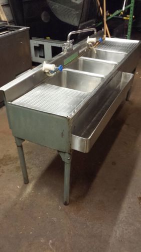 3 Compartment / Bay BAR SINK w/ Faucet & Two Drainboards & legs