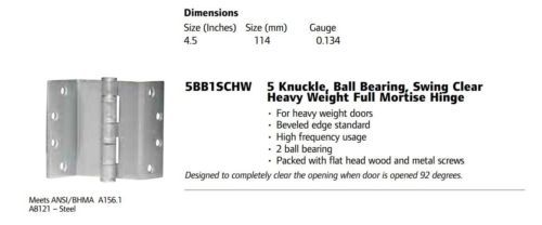 3 Ives 3CB1 SH 5" x 4.5" 626 NRP 3 Knuckle Concealed Bearing Hinges STAINLESS