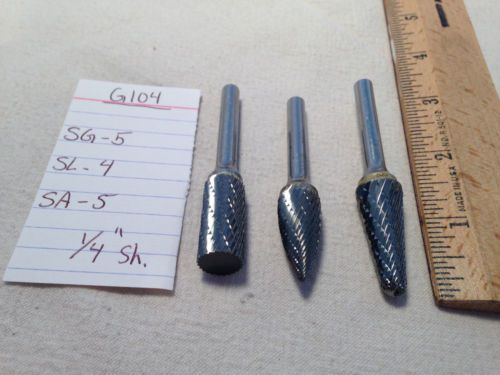 3 NEW 1/4" (.250) SHANK CARBIDE BURRS. DOUBLE CUT. SG-5, SL-3 USA MADE {G97}