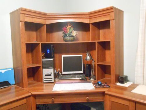 Durable U-Shaped Home Office Suite Wraparound Desk w Hutch