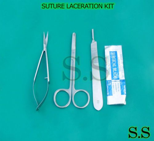 3 PCS SUTURE LACERATION KIT+CASTROVIEJO SCISSORS 4.5"+SCALPEL HANDLE#4+BLADE #22