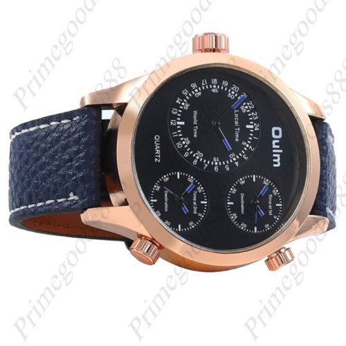 3 Time Zone Luxury Zones Sport Leather Quartz Wrist Wristwatch Men's Black