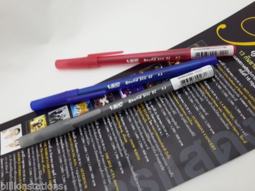 3 x BIC ORANGE FINE BALL POINT PENS MIX COLORS - BLACK + BLUE + RED