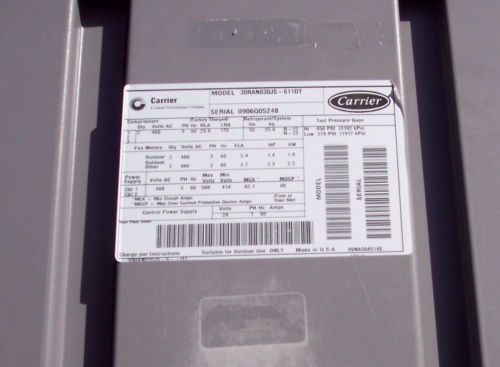BRYANT CARRIER 5 TON ROOFTOP PKG. AC UNIT W/ GAS HEAT, 460V 3 PH - NEW 137