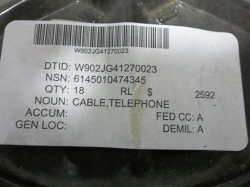 1000' SPOOL PHONE TELEPHONE CABLE WIRE MILITARY SURPLUS COMMUNICATION NEW