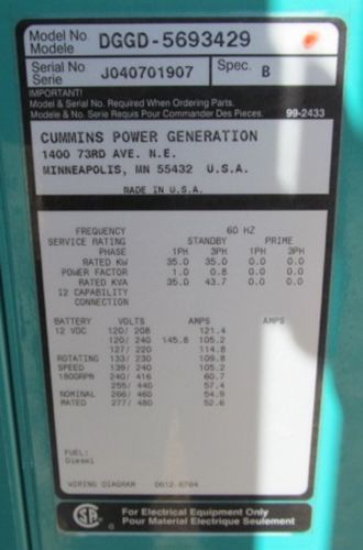 50kw Cummins / Onan QuietSite Diesel Generator / Genset - Load Bank Tested