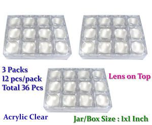8 PACKS OF 12 PC CLEAR PLASTIC LENS ON TOP GEMSTONE COIN JAR JEWELRY DISPLAY BOX