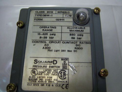 Square-D Machine Tool Pressure Switch Class 9012 Series C Type Gaw-5 150psi New