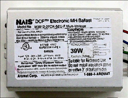 You are bidding on a Hatch MC39-1-F-120X Electronic Metal Halide Ballast for (1) 39W M130 Lamp. The items are used, were removed from a working environment. They were glued to a metal platform.