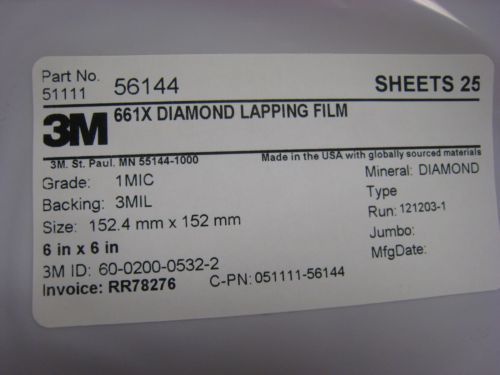 3M 661X Diamond Lapping Film 6" x 6" pack of 25 pcs 3 Micron # 56149