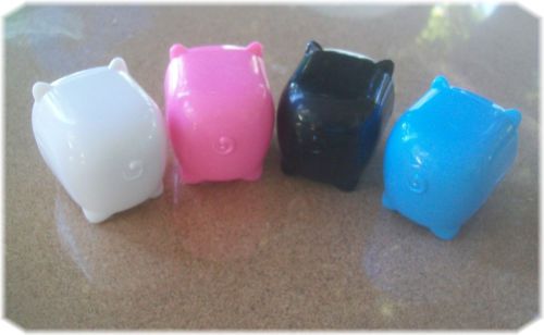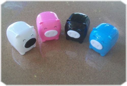 4 Novelty Pencil Sharpeners - Cute Happy Pigs - White, Pink, Blue & Black