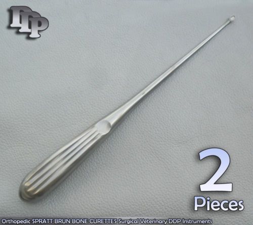 2 Pcs Orthopedic SPRATT BRUN BONE CURETTES 2/ 9" Surgical DDP Instruments