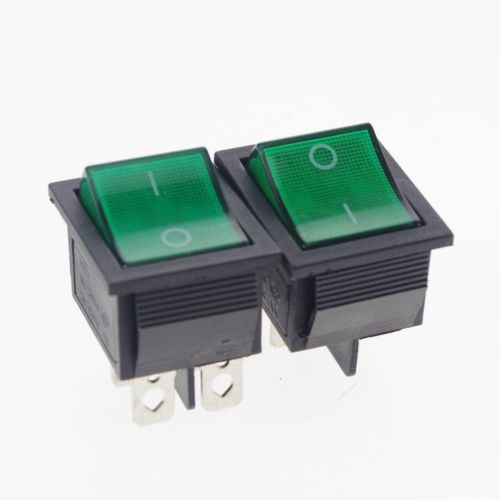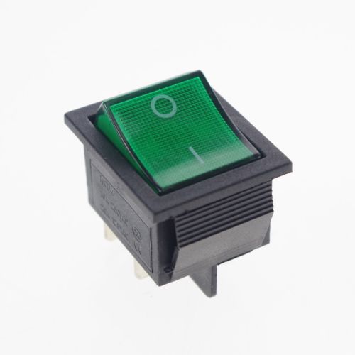 4 x SPST On-Off Green Light Illuminated Round Rocker Switch 6A/250V 10A/125V