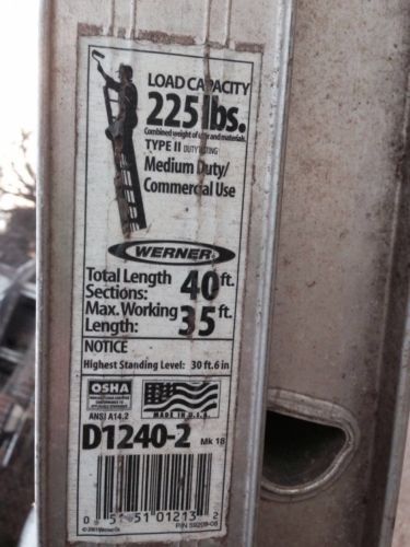 Werner 28' Fiberglass EXTENSION LADDER Load Capacity 300lbs D6228-2