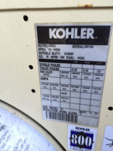 KOHLER 80RZ72 FAST RESPONSE 2 NAT GAS PROPANE 80 KW 1 OR 3 PHASE GENERATOR
