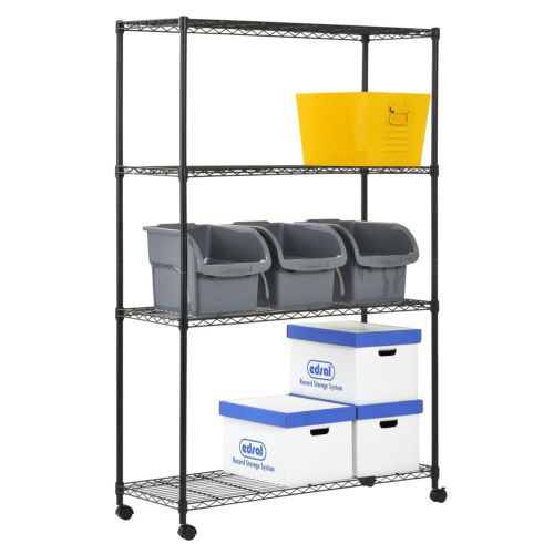 UPC | 48"W x 72"H x 18"D 4-Shelf Mobile Wire Shelving Unit - Black |