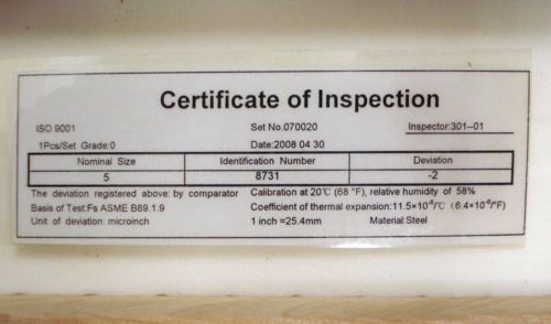Mitutoyo .625-2" Gage Block Set
