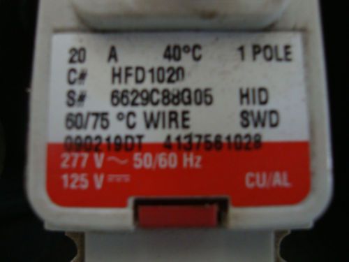 SQUARE D FA17020B MOLDED CASE 1P 20A 347V-AC CIRCUIT BREAKER B204680