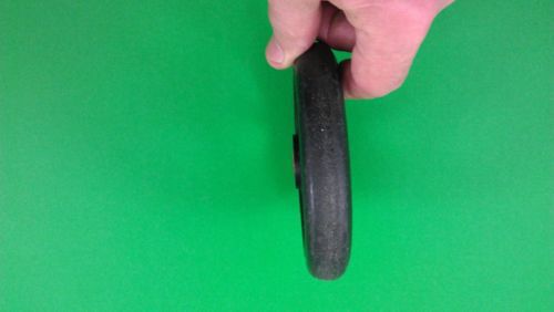 2 RUBBER TINY WHEELS WITH BALL BEARINGS, DIAMETER 3-7/8"; 1-1/16" THICK
