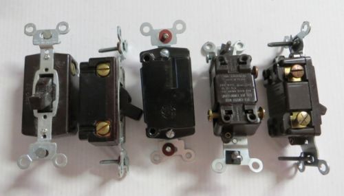 4 Vintage Hubbell Brown Electric Unused Switches 15 Amp 120 Volt Single Pole
