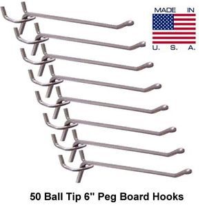 96 Piece 6 " PEG BOARD HOOKS BALL TIP Workshop Hanging Tool Display USA MADE
