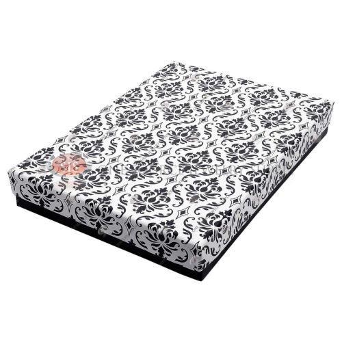 25 Damask Print Gift Jewelry Cotton Filled Boxes 7 1/8" x 5 1/8" x 1 1/8"