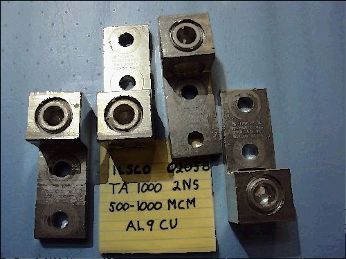LOT OF 4 BRAND NEW 500 MCM ALUMINUM SPLIT BOLT CONECTORS LOT INCLUDES 2 BURNDY KSU34 UNIVERSAL SERVIT CONNECTORS AND 2 ERITECH ASBP500 CONNECTORS ALL UL LISTED EQUAL RUN AND TAP 500MCM COPPER OR ALUMINUM MINIMUM TAP #2 STRANDED COPPER OR ALUMINUM NORMALLY SELL FOR UP TO $50.00 EACH