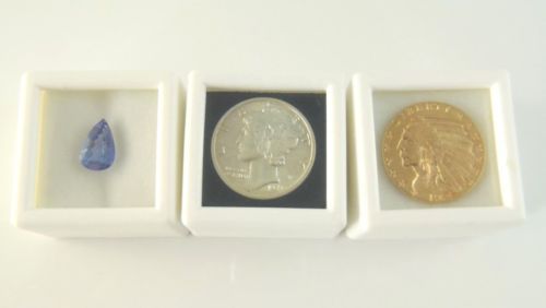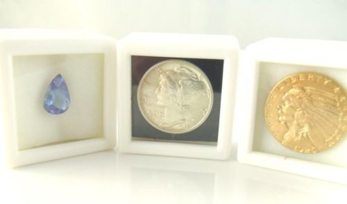 3 PC 1-1/2"x3/4" WHITE SQUARE Glass Top Gem Box storage/display gold/gem/coin