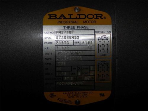 Baldor EM377OT Used 7.5 h.p. 19/9.5 amps 1770 rpm. 230/460 volts 3 ph.
