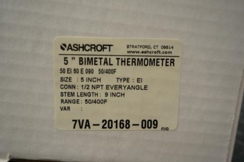 50EL60E090 5" Bi-Metal Thermometer 9" Stem 1/2" NPT 50-550 ?F Ashcroft Lot of 2