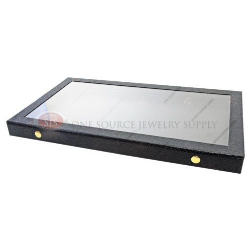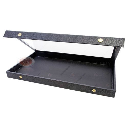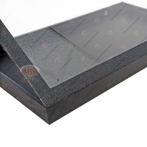 12 Glass Top Lid Black 18 Space Storage Display Box Case Jewelry Pocket Watch