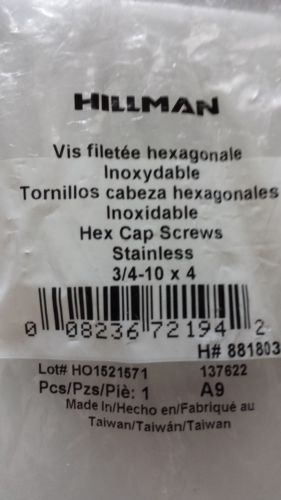 6 HILLMAN STAINLESS STEEL HEX CAP SCREW 3/4-10 x 3