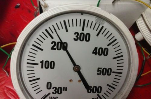 6" Liquid filled Panel mounted (1/4" NPT) White Face VAC Range -30 to 600 PSI Ga